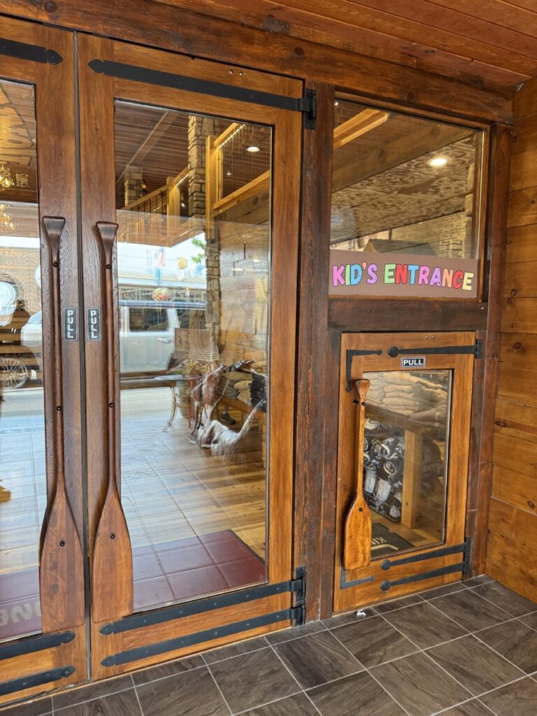 There are also a couple of woodsy stores, one called Ronnings with canoe paddles (of course!) for handles, and a tiny kids’ entrance. Sooo cute!