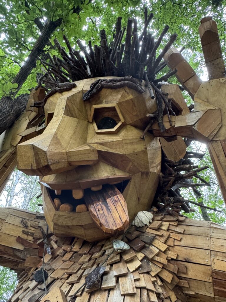 Here, they have created the tallest troll yet, a 36-foot-tall giant named Long Leif, who stands proudly in a clearing at Detroit Mountain Recreation Area (where they are building a new RV campground soon!), complete with nose booger.