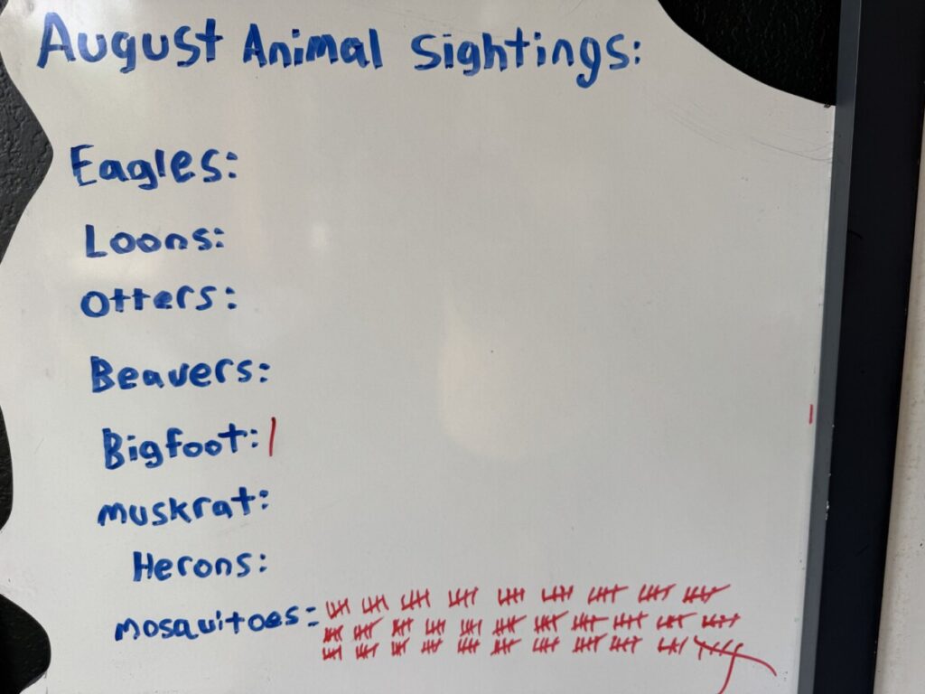 We also joined the boating game via a 2.5-hour NPS “Grand Tour” of Rainy Lake. It was not super grand, consisting mostly of trying to spot eagles in the shoreside trees (they pick the barest/ugliest trees to have room to stretch out their 8 foot wide wings), but it did get us out on the water one more time in this watery wonderland, and included a stop on Little America Island, where a mining claim was in operation during a short-lived gold rush around 1893.